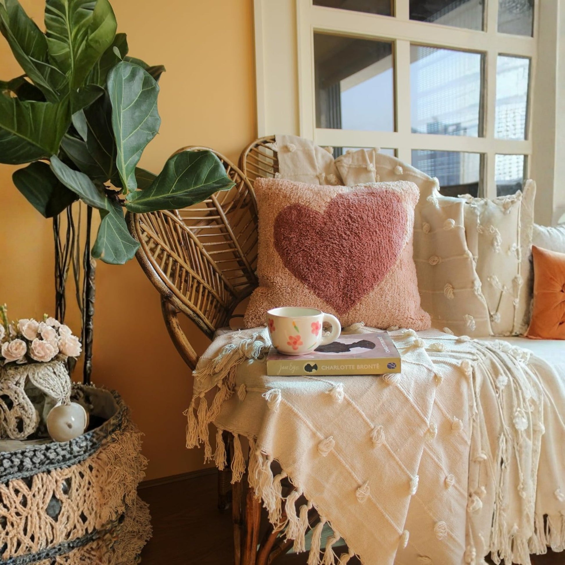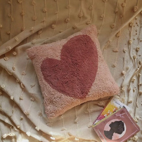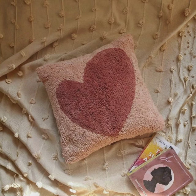 Cotton Tufted Cushion Cover – 16×16 inches (40×40 cm) | Throw Pillow Cover with Heart Design