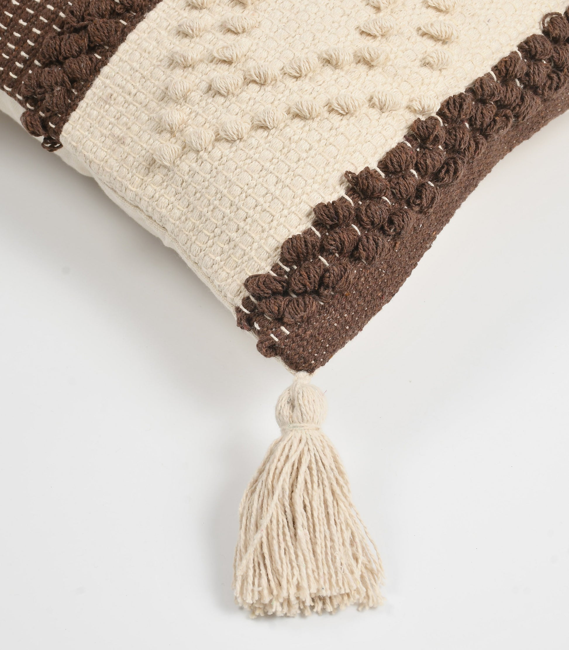 Finished with matching cotton tassels on all four corners, adding a cozy bohemian charm and enhancing the artisanal look of the cushion cover.